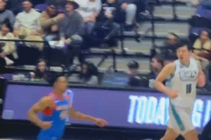 依旧自信十足!开场不久投进超远三分是否没想到?威少:怎么可能