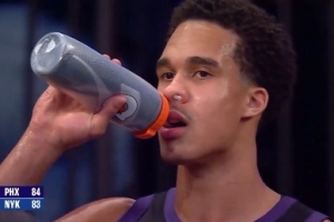 三分超级准!凯莱布·乐福半场三分4中3射落11分 送半场超远空接