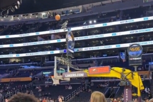 GIF-东契奇在球员通道超级弧线投进三分