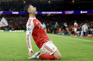 数据统计显示,马丁内利为阿森纳共计出战249场,终获首个帽子戏法。也是他首次为枪手在单场比赛头槌双响。